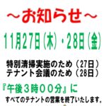 11月27日(木)と28日(金)はメルヘンぴっと内の特別清掃とテナント会議が実施されるため、両日とも午後3時に全てのテナントの営業を終了いたします。ご迷惑をおかけいたしますが、ご理解とご協力をお願い申し上げます。 - KCT北ルート踏破!