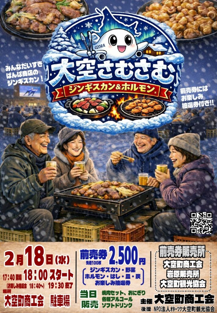 イベント情報 2026 1/22 お知らせ 2026-01-22 2026-02-04 ◆コンコンロコン~おいでよ!めまんべつ~ 1月31日(土)から3月7日(土)まで◆大空さむさむジンギスカン&ホルモン 2月18日(水)この冬もイベント目白押し!ぜひお越しください! お知らせ SNSでシェアしてね URLをコピーしました! 大空町へ訪れる皆さまへお願い 関連記事 大空町へ訪れる皆さまへお願い 2025-11-21